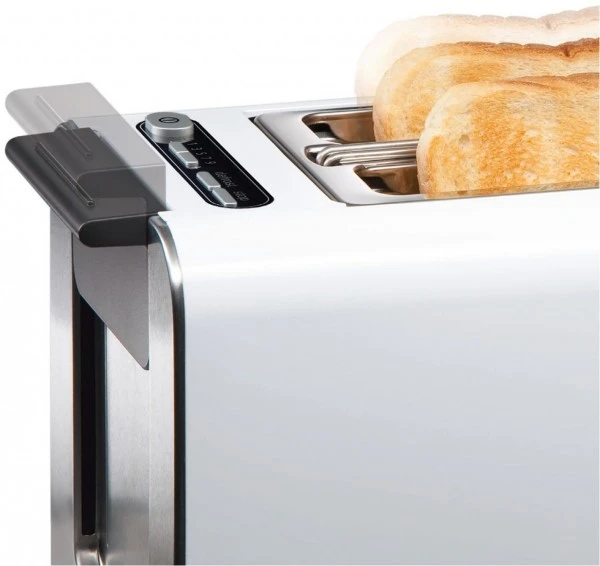Nennaufnahme: 860 Watt, “Mirror Heating” / Quarzglas-Heizung für besonders schonende Röstung, “AutoHeat Control”: Elektronisch gesteuerte Röstgradkonstante für gleichbleibende Toastergebnisse, Für 2 Scheiben Toast, Wärmeisoliertes Gehäuse, Digitale Einstellung der Röststufen inkl. Nachtoast-, Aufknusper und Memory-Funktion, Auftaufunktion mit separater beleuchteter Taste, Separat beleuchtete Stopp Taste, Automatische Brotzentrierung für gleichmäßige Bräunung, Edelstahl Brötchenaufsatz, integriert Manuelle Nachhebefunktion, Verklemmungssicherheit, Herausnehmbare Krümelschublade, Kabelaufwicklung