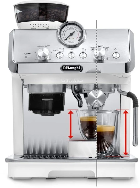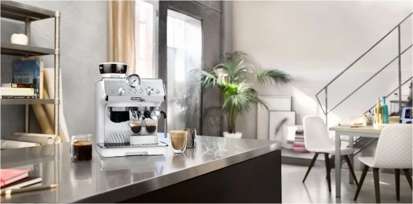 Perfektion liegt im Detail: die Front ist aus gebürstetetem Edelstahl und mutet besonders hochwertig an. Das minimalistische, italienische Design konzentriert sich auf das Wesentliche. Das Bedienfeld ist intuitiv und über das Manometer behalten sie die Kontrolle über den Brühvorgang.