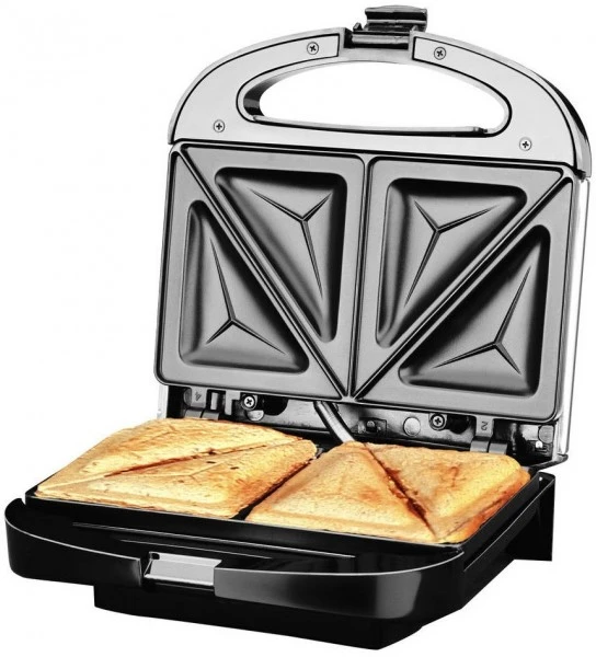 XXL Sandwiches – für große und kleine Toasts geeignet, Doppeltoastform: für 4 knusprige Sandwiches, Versiegelung der Zutaten im Toast, mit Bruchkante, Antihaftbeschichtung der Grillflächen für eine fettarme Zubereitung und einfache Reinigung, Ober- und Unterhitze, 850 Watt Heizleistung, modernes Edelstahl-Design, Griffe mit Aussparungen für eine sichere und bequeme Anwendung, zwei Kontrollleuchten.