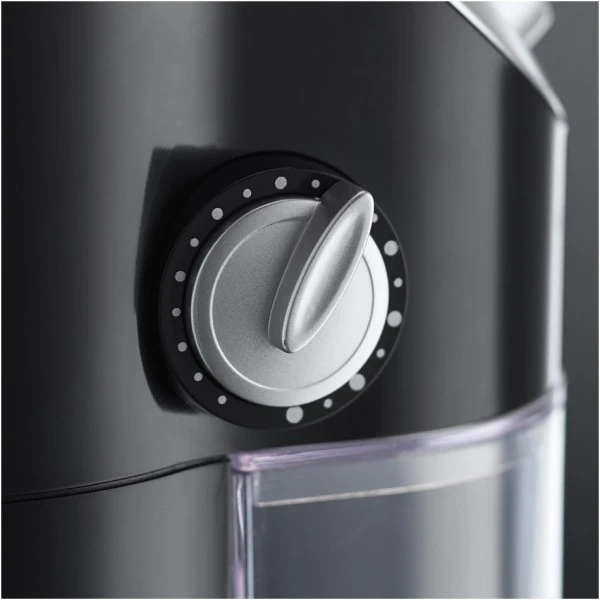 Die Kaffeemühle verfügt über ein hochwertiges Scheibenmahlwerk mit variablen Mahlgrad-einstellungen und einem 140 Watt Motor. Die Mühle eignet sich sowohl zur Herstellung von Espresso- und Mokkapulver als auch für Filterkaffeepulver. Sie ist leicht zu bedienen und mahlt Pulver für 2 bis 12 Tassen.