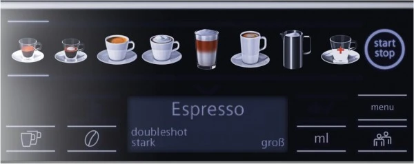 - coffeeSelect Display: Durch leichtes Berühren der Sensorfelder können Kaffee- und Milchspezialitäten direkt angewählt und zubereitet werden