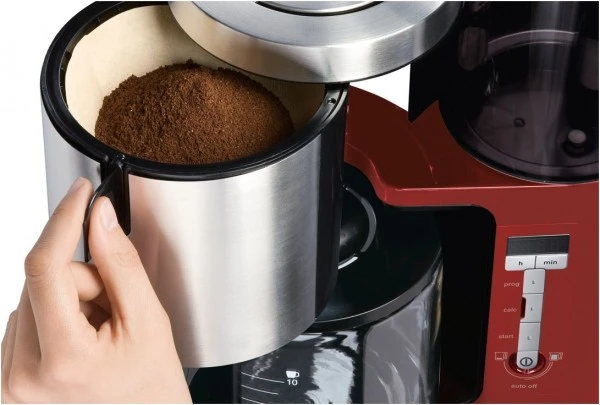 Anschlusswert 1160 Watt max., 10/15 Tassen, 1,25 Liter, Timer mit Memory und Uhrfunktion, Entkalkungssystem, transparenter abnehmbarer Wassertank mit integriertem Griff – Wasserstandsanzeige beidseitig ablesbar, Filterträger schwenk- und abnehmbar (1 x 4), Tropfstopp, integrierte Kabelaufbewahrung, automatische Abschaltung in den Stand-by-Modus nach 2 Stunden, “AromaSensePlus” für optimales Kaffeearoma auch bei kleinen Brühmengen, “sensor controlled heating system”: bester Kaffeegeschmack durch optimale Temperaturregelung beim Brühen und Warmhalten, Netzkabellänge 100 cm, Gerätemaße (HxBxT): 35,5 x 26 x 25 cm, Gewicht: 3,14 kg.